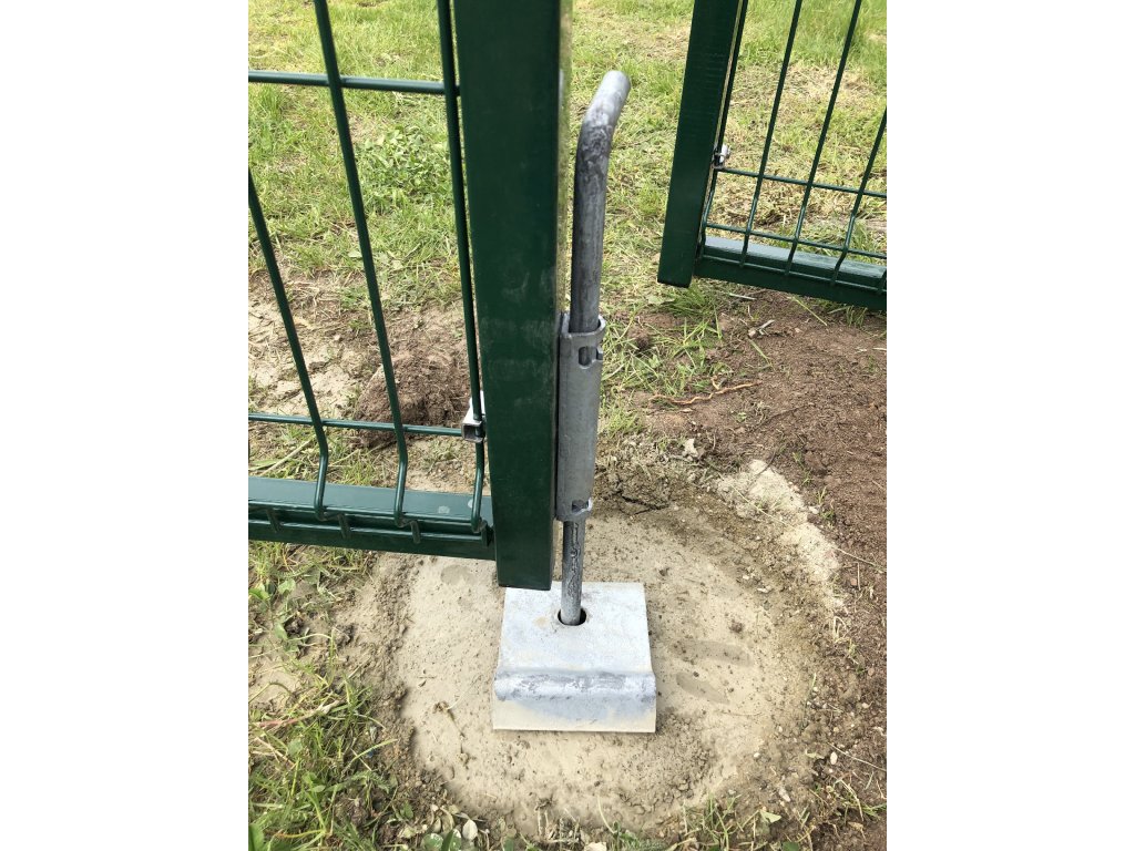 Součást brány: 2ks Sloupků k bráně o průměru 80x80 mm , panty, klika, zámek, fab vložka, a zajišťovací kolík do země.