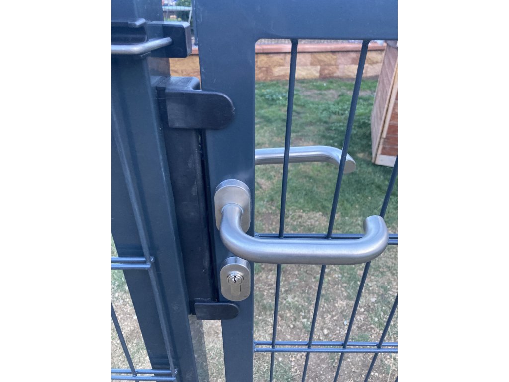 Rám branky je svařen z jeklu 40×40 mm, výplň je panel 2D. Včetně pantového a dorazového sloupku z jeklu 60×60 mm, s klikou a zámkem. Variabilní plastový doraz určuje směr zavírání branky (pravá, levá) dle nastavení dorazu. Povrchová úprava zinek nebo s nástřikem RAL 7016.