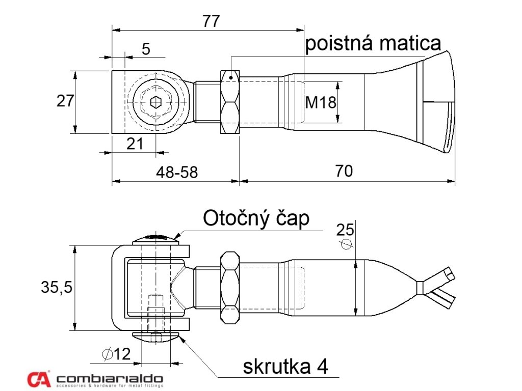 Regulovateľný, navárací záves-pant, závit M18 od popredného talianského výrobcu Combi Arialdo. Povrchová úprava- pozink, časť v tvare U /prizvára sa na krídlo brány/ - bez povrcovej úpravy. Použitie pre ľahké brány. Zaťaženosť krídla zvýši kombinácia so spodným závesom C348/20 a C349/20. Počet kusov v balení - 12.