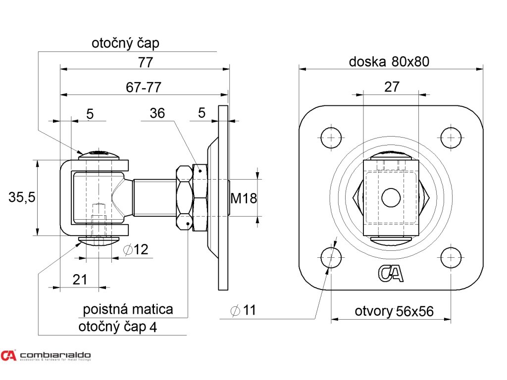 COMBI ARIALDO pant M18 s plotnou 80 x 80 mm, otevíratelný 90°, nastavitelný 1D, částečně pozinkovaný