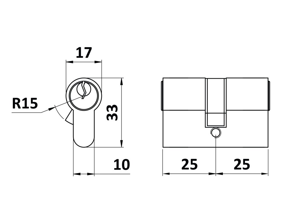 Cylindrická vložka 25x25mm, mosazná, 3 klíče, šroub M5x65mm, A = 25mm, B = 25mmDoplňkové parametry
