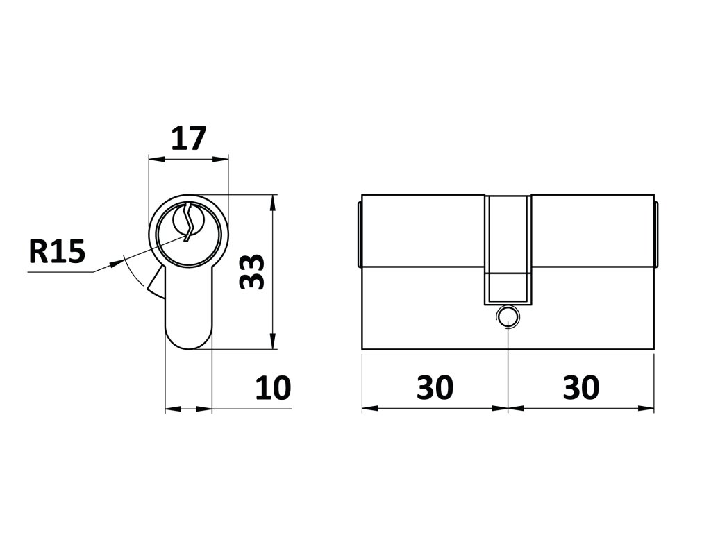 Cylindrická vložka 30x30 mm, niklová, 3 klíče, šroub M5x65 mmDoplňkové parametry