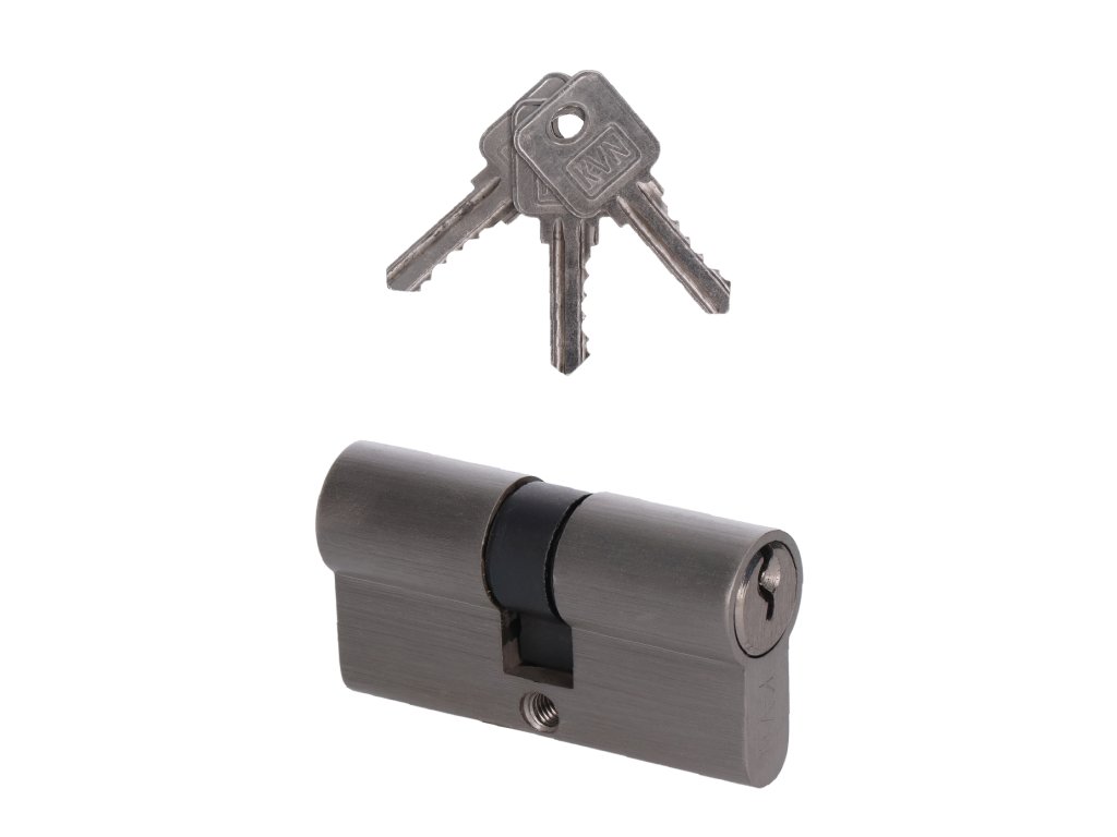 Cylindrická vložka EURO 30/30mm, nikl Satina, 3 klíče, šroub M5x65mm