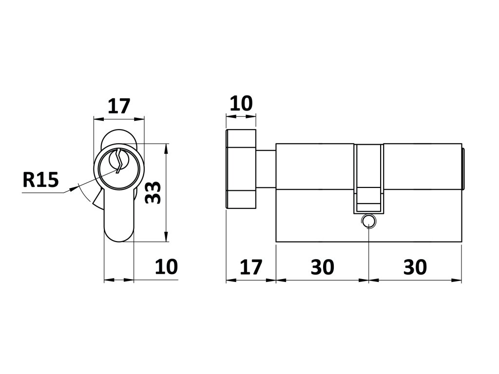Cylindrická vložka 30x30mm, nikl Satina, 3 klíče, šroub M5x65mmDoplňkové parametry
