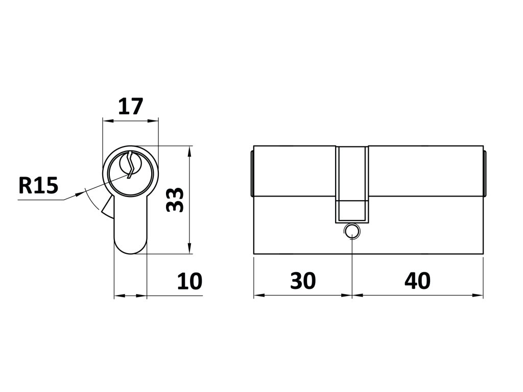 Cylindrická vložka 30x40mm, mosazná, 3 klíče, šroub M5x65mmDoplňkové parametry