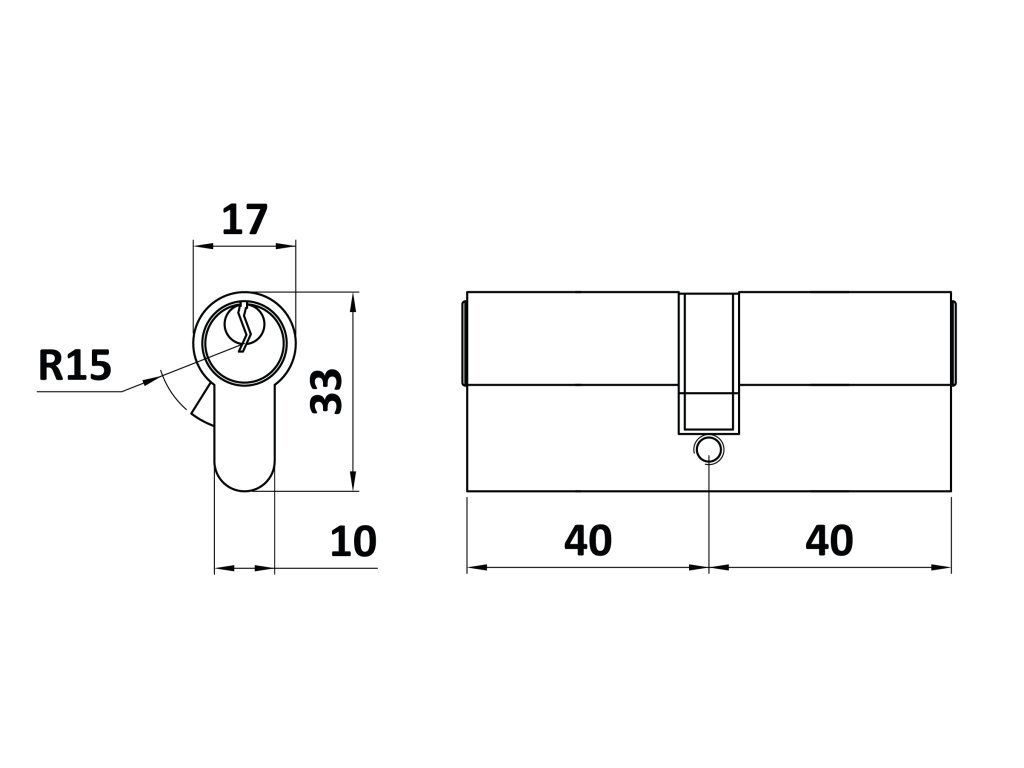 Cylindrická vložka 40x40mm, mosazná, 3 klíče, šroub M5x65mmDoplňkové parametry