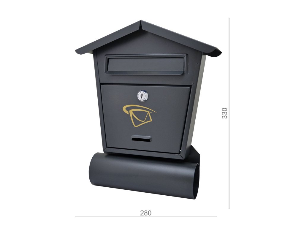 Poštovní schránka 280x330x50mm, grafitová, max. formát listu: B6, tunel na noviny ø70 mm Jak si namontujete poštovní schránku? Do zateplené fasády Použijte spirálové hmoždinky WKDS Hmoždinka se jednoduše zašroubuje do izolace, šroub použijeme s průměrem 4,5 mm. Pro tloušťku izolace 60 mm a více použijte WK-DS050. WK-DS085 lze použít pro tloušťku izolace 90 mm a více. Nosnost jedné takové hmoždinky je až 5 kg, takže pro poštovní schránku je to zcela dostačující. Další možností je provrtat izolaci až do zdiva, ale v tomto případě je důležité zvolit dostatečně dlouhou hmoždinku. Máme na výběr se šroubem nebo bez něj. Do dřeva Použijeme samořezný šroub do dřeva, kterých je na výběr spousta. Pokud nechceme použít samořezné šrouby a máme-li přístup z druhé strany dřeva, můžeme použít klasické metrické šrouby s podložkou a maticí. Máme na výběr potřebné délky. Do kovu / o kov Pokud to situace dovolí, můžeme k upevnění použít samovrtné šrouby TEX, k dispozici je máme také se zápustnou hlavou nebo s půlkulatou hlavou - jejich výhodou je, že je můžeme použít bez předvrtání. Další možností je upevnění pomocí šroubu a nýtovací matice - tím se vytvoří potřebný závit i v tenkém profilu a schránka se snadno přišroubuje.Doplňkové parametry