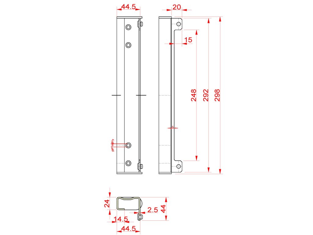Doraz pro branku 292x45x44 mm, pravý / levý, pozinkovaný povrchDoplňkové parametry