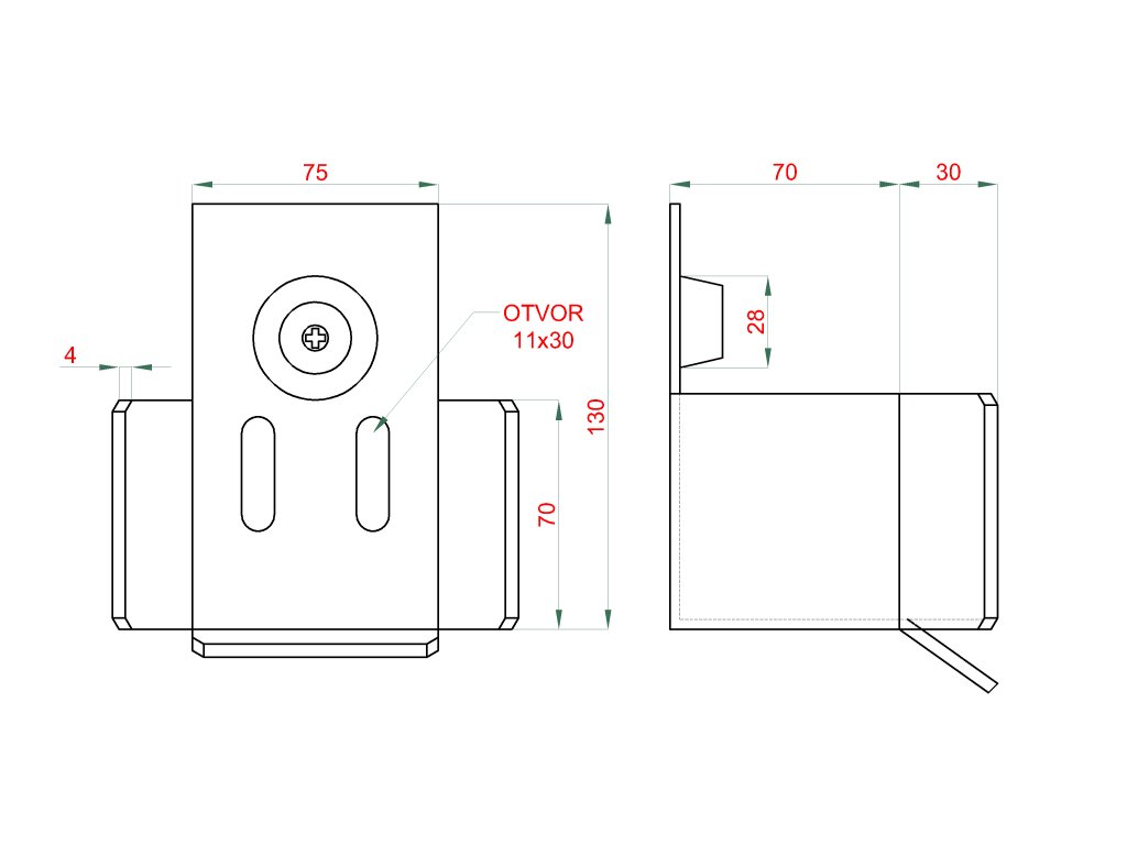Doraz pro samonosnou bránu, pro profil 60 x 60 x 4 mm