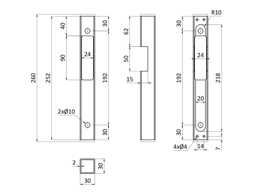 Dorazová kazeta pravá/levá pro elektrozámek (260x30x30 mm), pozinkovaná