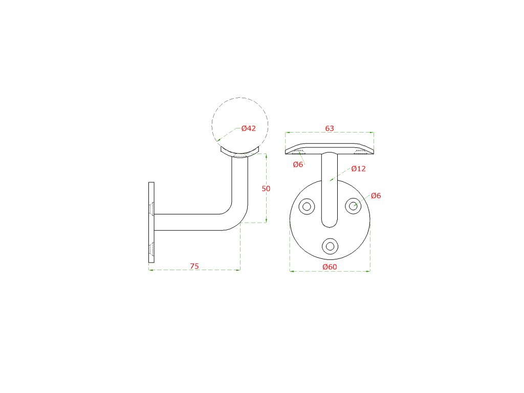 Držák madla na stěnu, odsazení 75mm