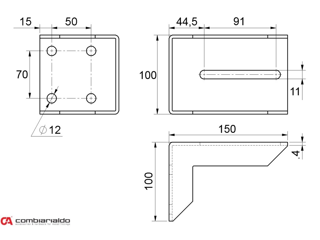 Držák dojezdové kapsy pro posuvné brány 100 x 100 x 150 mm, Combi ArialdoDoplňkové parametry
