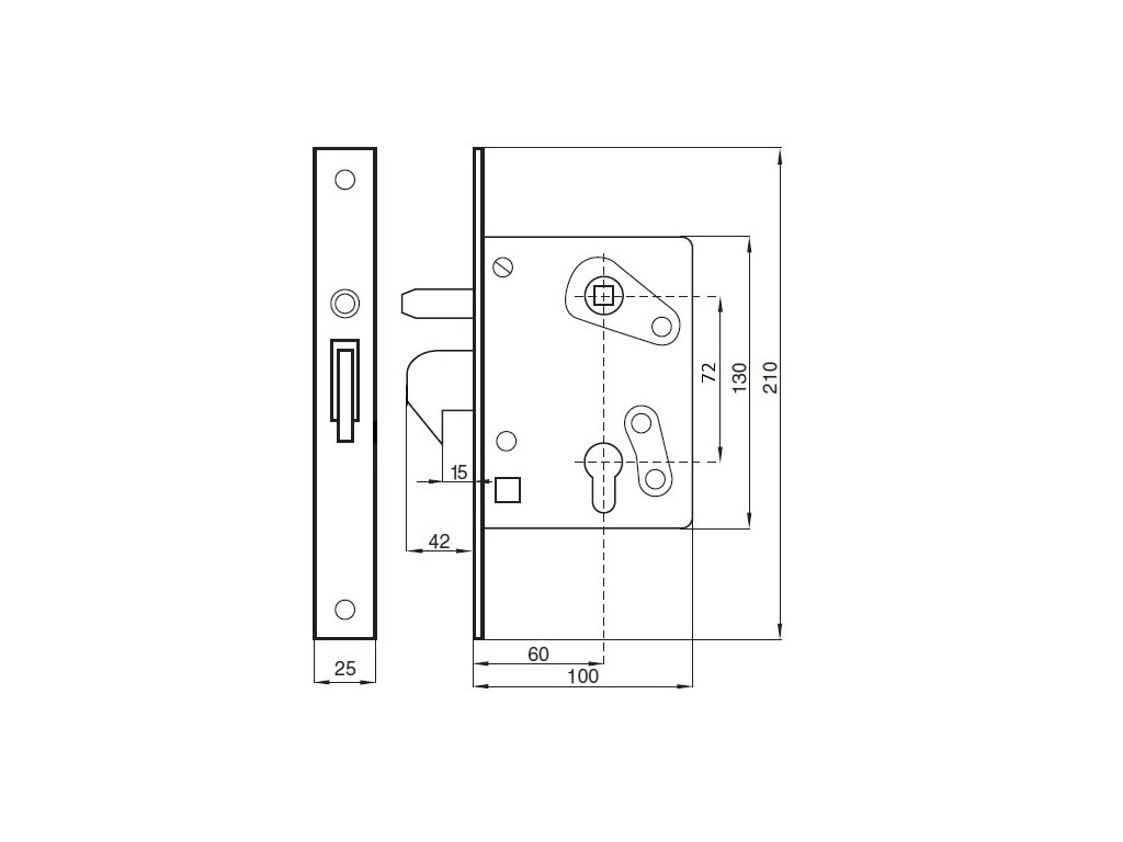 Hákový zámek na posuvnou bránu, rozteč 72 mm