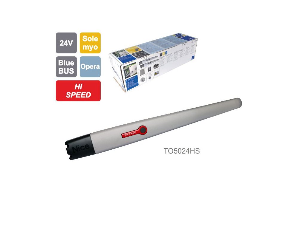 HI-SPEED TOONA - rychlý pohon pro křídlovou bránu do 5m/křídla, 1x TO5024HS ( 24V, 192W, 1800N) Velmi rychlý pohon - 90° otevře za 16 sekund! Včetně enkodéru. Určený pro řídicí jednotku MC824H, podporuje systém OPERA, BLUEBUS, zálohování a úsporný režim.Doplňkové parametry
