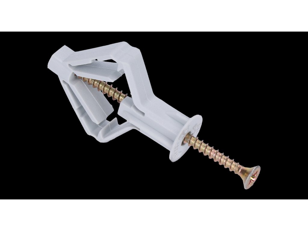 Hmoždinka plastová rozpěrná do sádrokartonu se šroubem -> hmoždinka pro snadné upevnění do sádrokartonu a do podkladů s dutinami ->šroub 3,5 x 60, zápustná hlava -> nylonDoplňkové parametry