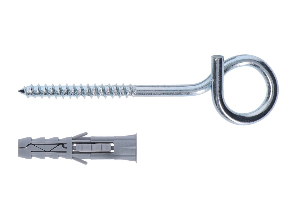 Hmoždinka univerzální 12x60 s hákovým šroubem 8x120 > Speciální plastové úchytky na hmoždinky zabraňují jejímu protočení během montáže > Speciální konstrukce rozpínacích pruhů způsobuj silné zaklienenie a zabraňuje jejímu zkroucení při částečném zašroubování šroubu > Vodicí lišty ve vnitřní části zaručují středové vedení šrouby > Zvětšený límec zabraňuje přílišnému zatlačení hmoždinkyDoplňkové parametry