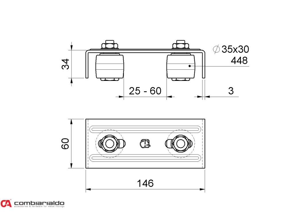 Horní vedení brány Combi Arialdo, 2 vodící nylonové kladky 35 x 30 mm