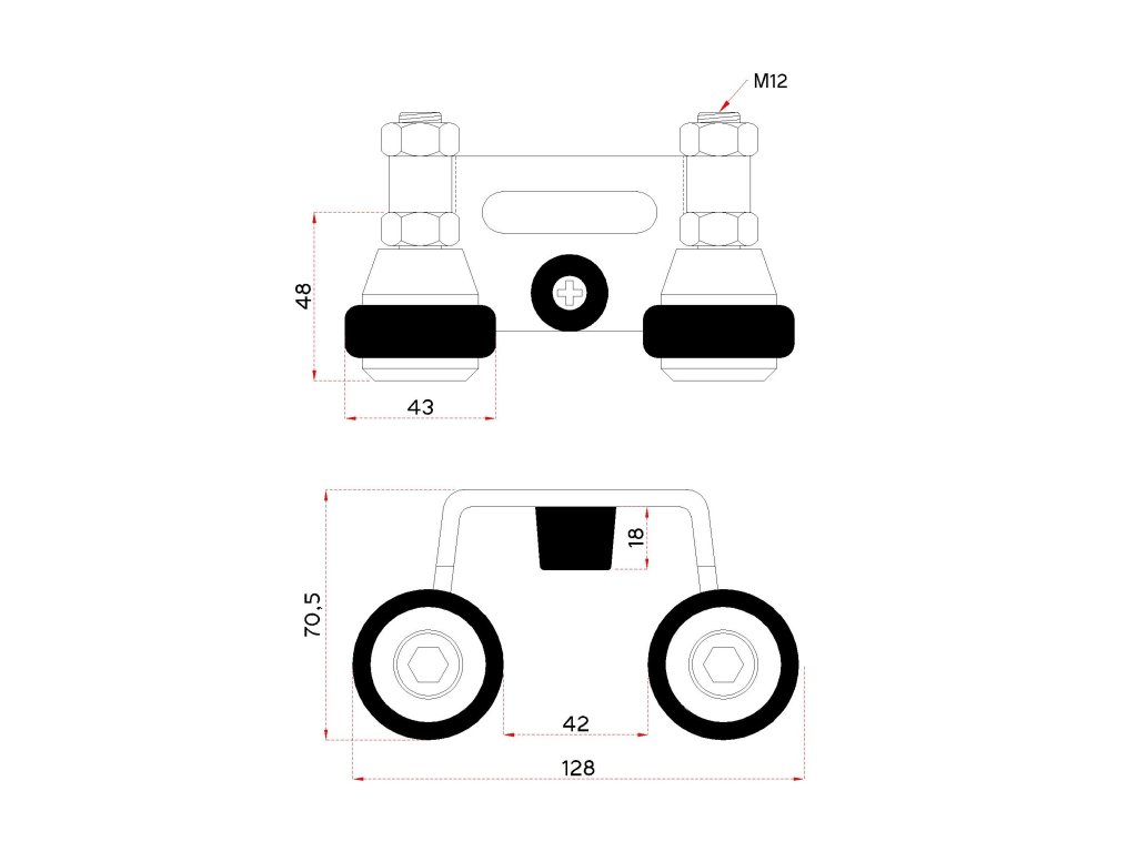Horní doraz s gumovými kladkami pro profil 40mm