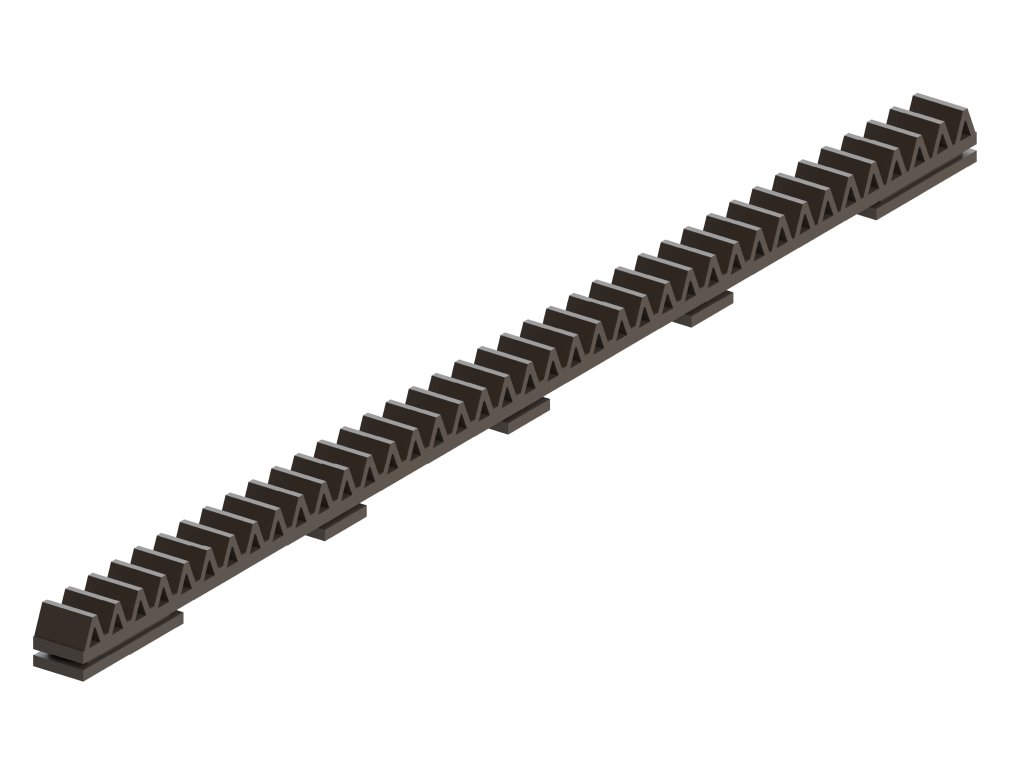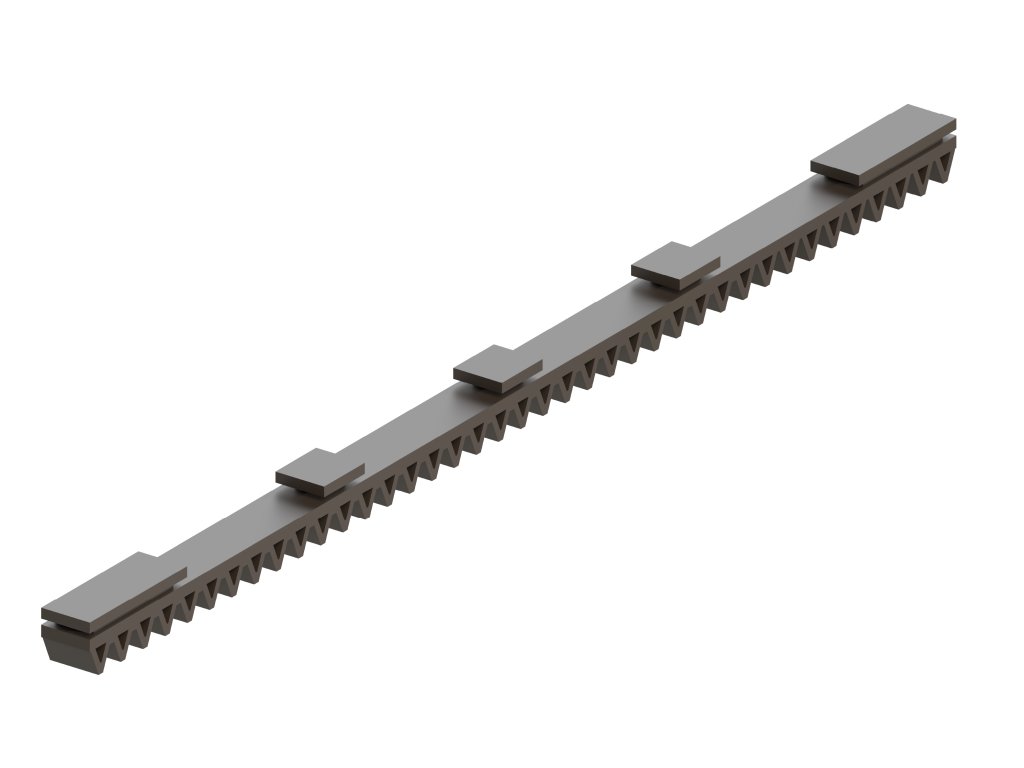 Nylonový hřeben CREM-05AL je vyztužený sklolaminátovými vlákny. Je určený pro použití k hliníkovému samonosnému profilu AL-C95x100, rozteč zubů je vhodná pro pohony s pastorkem s modulem M4. Délka – 500 mm Maximální nosnost 300 kg Prodáva sa samostatne bez koncového dorazu CREM-ALX.Doplňkové parametry