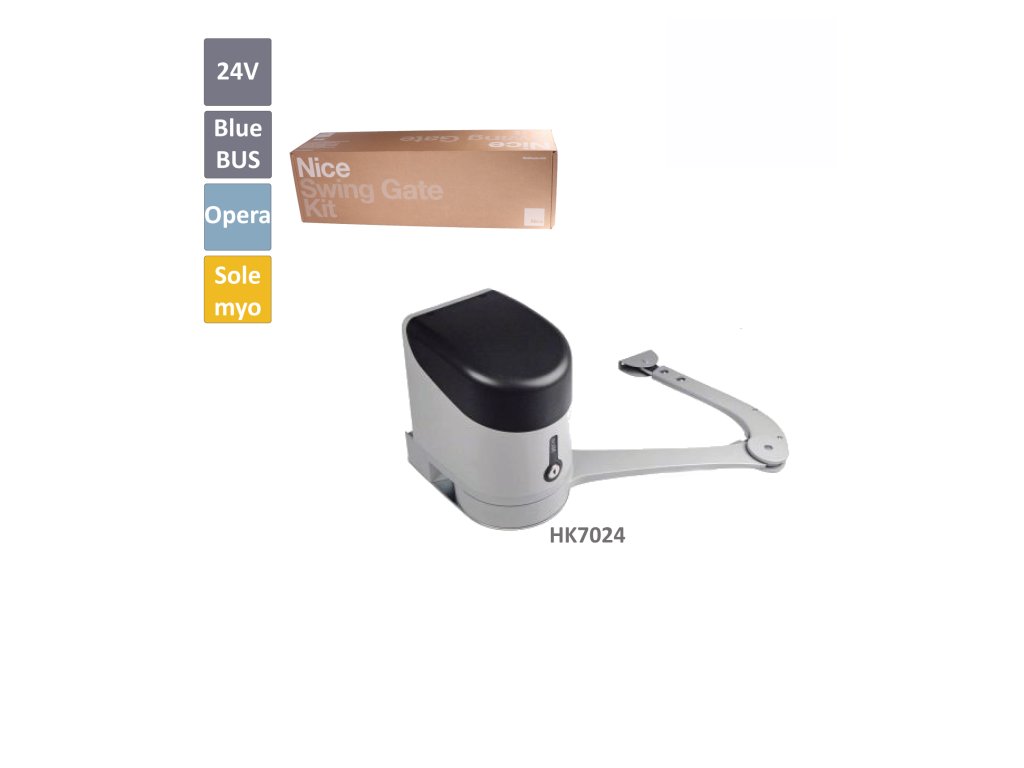 HYKE - pákový pohon pro křídlovou bránu do 3,5m/křídlo, motor 24V, 300W, 500Nm bez elektroniky Hyke je pákový pohon pro křídlovou bránu do délky jednoho křídla maximálně 3,5m a do 330kg hmotnosti. Jde o moderní pohon s vestavěnou řídící jednotkou.určený na brány se silnými pilíři - až do 400mm zapuštění. Velmi tichý chod, vestavěné koncové dorazy pro otevření i zavření a možnost odblokovat zvenku. Podporuje nejmodernější směry NICE: BLUEBUS, SOLEMYO a OPERA. Zapojení, zálohování a programování je tedy velmi snadné. Artikl N HK7224 obsahuje pouze pohon - BEZ řídící jednotkyDoplňkové parametry