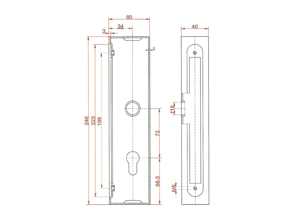 Kazeta 245x60x40mm, na jekl 60x40mm, se zámkem ZM72/50 rozteč 72 mmDoplňkové parametry