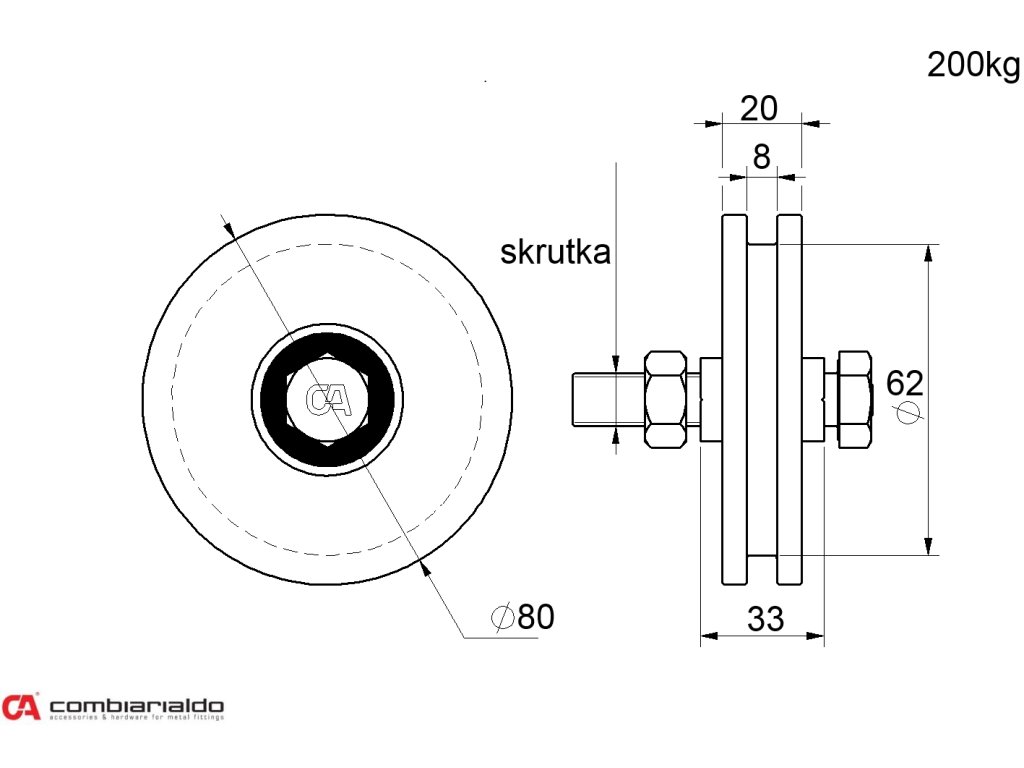 Vodiace koliesko od popredného talianského výrobcu Combi Arialdo. Povrchová úprava- pozink. Použitie pre posuvné brány k profilu T.Doplňkové parametry