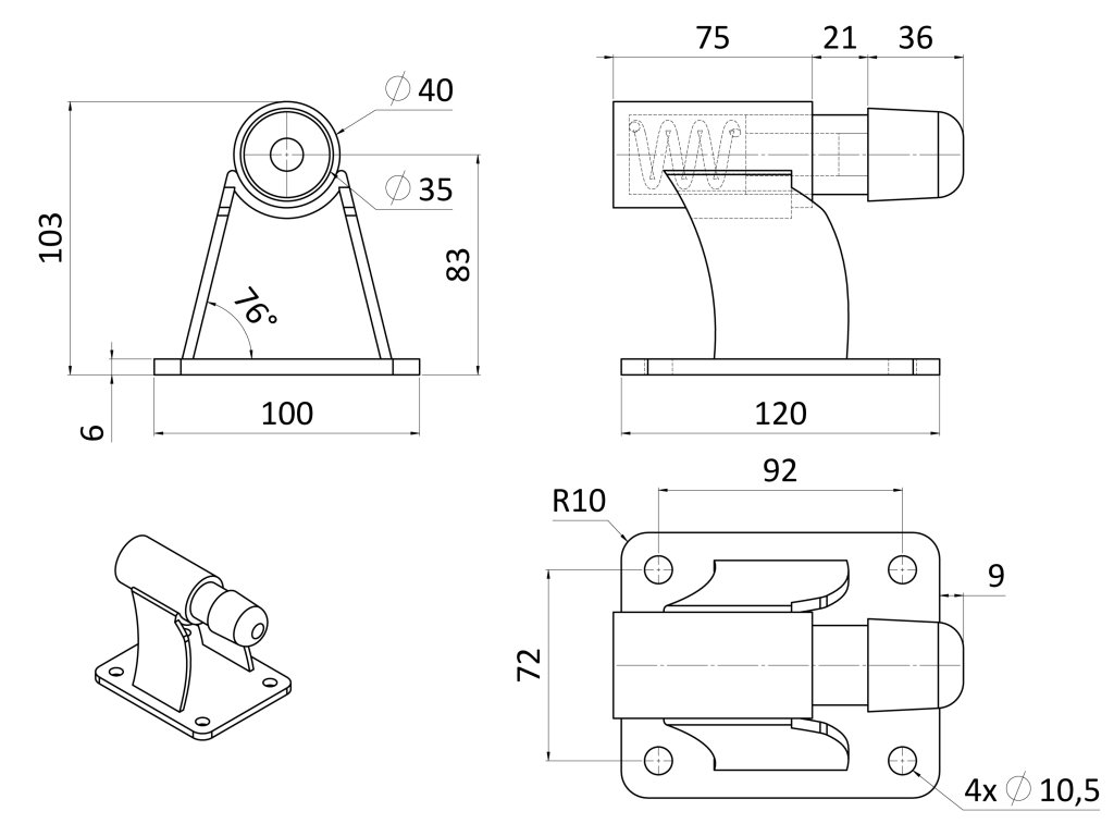 Koncový doraz pro posuvnou bránu, s tlumicí pružinou, pozinkovaný