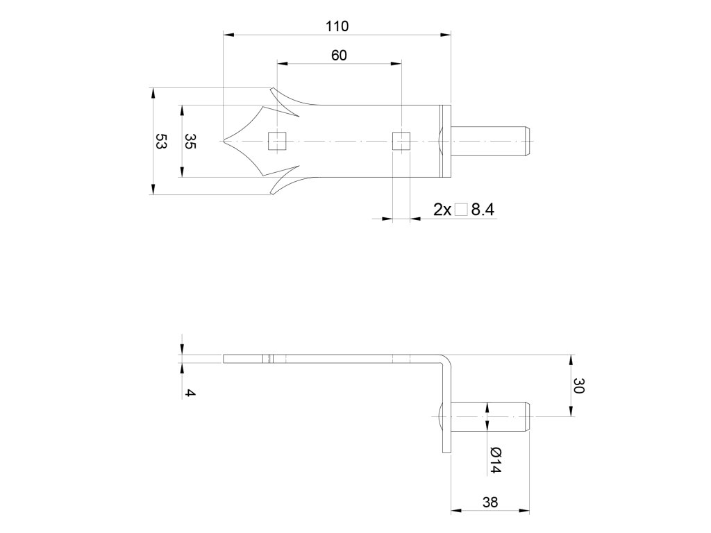 Kování ozdobné, 150 x 35 mm, ø14 mm, černá barvaDoplňkové parametry