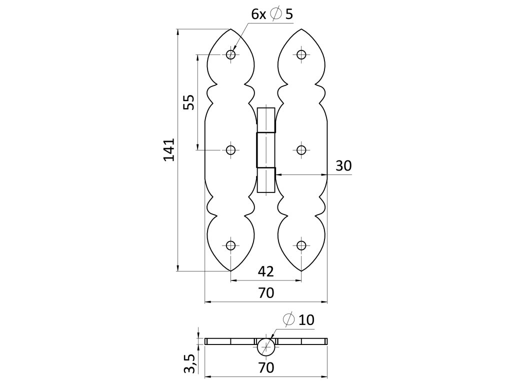 Kování ozdobné, 142x70x3mm, povrch RAL9005 matná