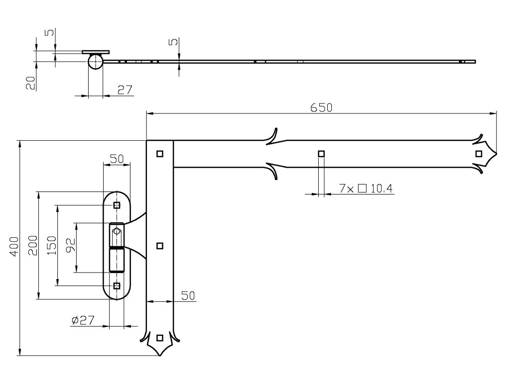 Kování ozdobné HORNÍ, 400 x 650 mm s čepem, profil 50 x 5 mm, černýDoplňkové parametry