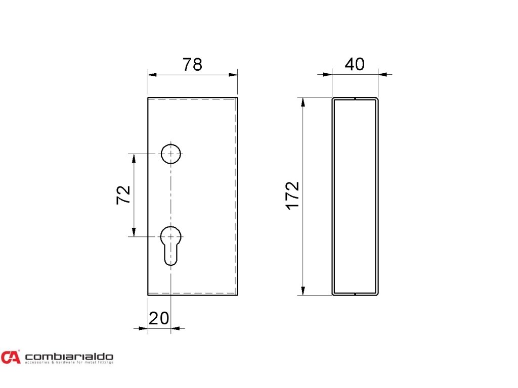 Kryt zámku od popredného talianského výrobcu Combi Arialdo. Povrchová úprava pozink. Použitie pre posuvné brány. Kryt sa navára na jockel 40mm - kombinácia so zámkom C351 a C353. Počet kusů v balení - 6.