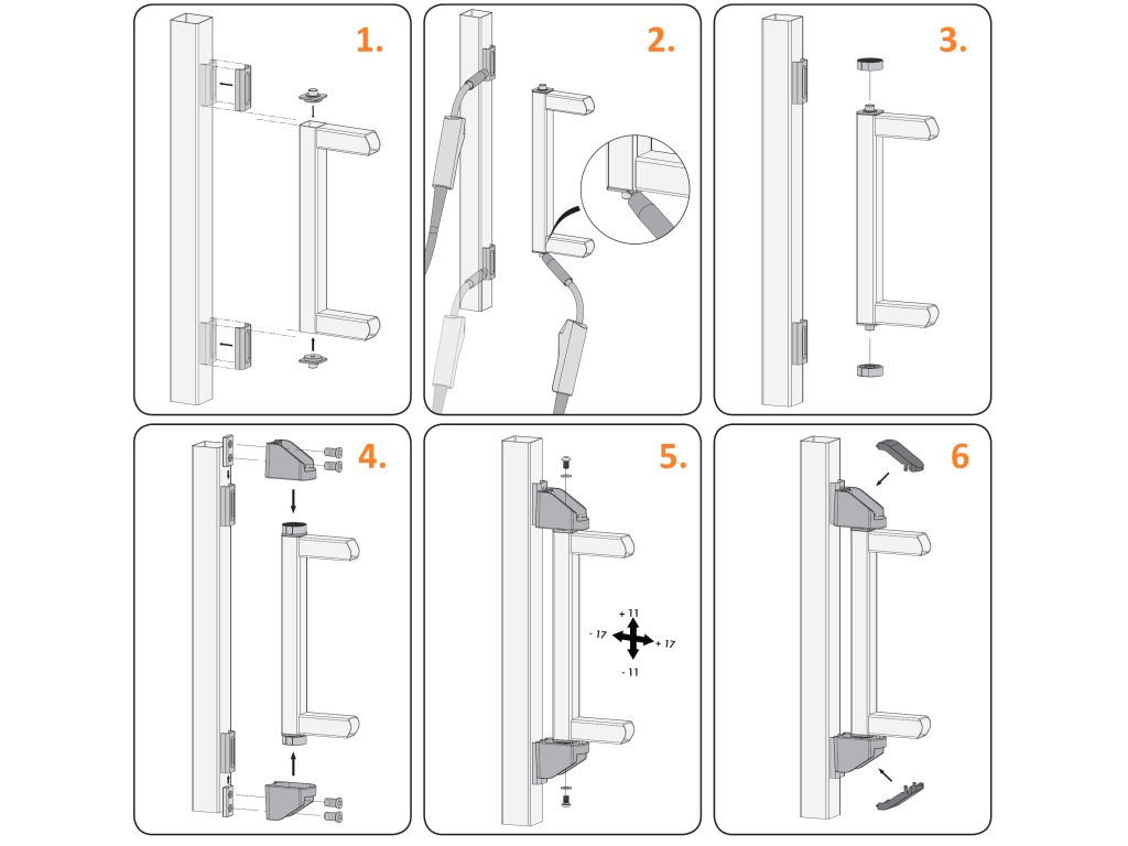 Bezúdržbový ložiskový pant z nerezavějící oceli pro montáž do profilu 40 x 40 mm nebo 50 x 50 mm. Pant je nastavitelný na výšku a šířku. Pomocí regulace pantu docílíte souběžnosti křídel (například vyosení sloupku vlivem mrazu). Technické informace: Montáž do profilu bránu 40x40 nebo 50x50 mm Nevařitelný na sloup Nastavitelný závěs: 35 mm na šířku (X), 22 mm na výšku (Y) Speciálně vyvinuto pro automatické brány Pouzdro z nerezavějící oceli Vybaveno ložiskem z nerezavějící oceli Minimální povolená vzdálenost mezi panty „A“: 250 mm Maximální povolená hmotnost brány „G“: 218 KG / PÁR (spodní pant je nosní) Maximální povolená délka vrat „L“: 4000 mm