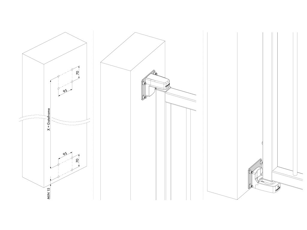 Montážní sada je volitelné příslušenství zavírače LOCINOX® INTERIO. Slouží pro uchycení zavírače vrat přímo na zeď. Montážní sada se skládá ze dvou nástěnných konzol (upevňovací šrouby LOCINOX® QUICK-FIX jsou součástí balení). Nastavitelný: 10mm na výšku (Y), 15mm do hloubky (Z) Nástěnná konzola žárově pozinkovaná v barvě RAL9005 (prášková barva) Rychlá montáž upevňovacími šrouby LOCINOX® QUICK-FIX z nerezavějící oceli Vzdálenost mezi bránou a stěnou: min. 29mm Minimální výška pod bránou: 15mm Kompatibilní pouze se zavíračem vrat LOCINOX® INTERIO Rozměry – příloha Obsah balení: 1 KS LOCINOX INTERIO-GROUND (dvě nástěnné konzoly) 8 KS upevňovací šrouby LOCINOX® QUICK-FIXDoplňkové parametry