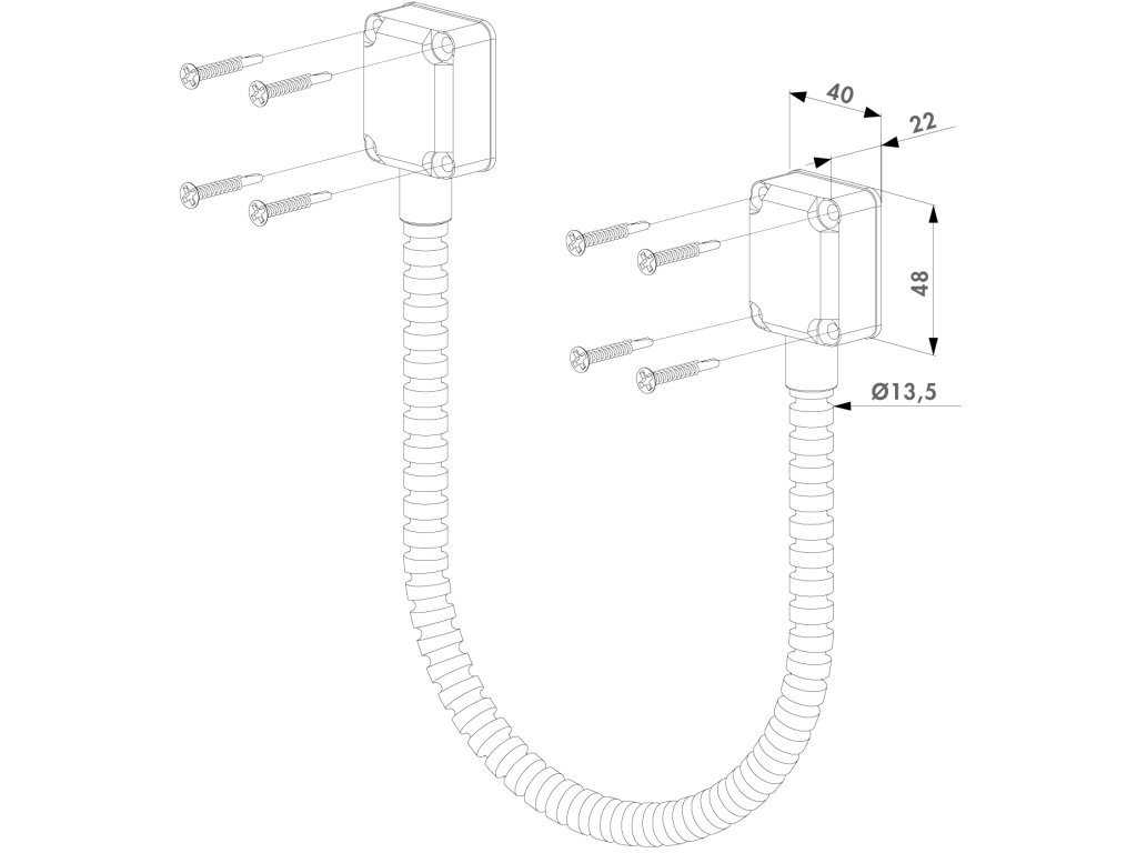 Nerezová chránička pohyblivého kabelu je určena pro montáž na křídlové brány. Zabezpečuje ochranu elektroinstalace před mechanickým poškozením (odolnost proti vandalismu) a chrání před působením UV záření, vlhkosti a prachu. Silná fixace pomocí 8 samořezných šroubů (součástí balení). Montáž na profil minimální šířky 40mm. Parametry: Délka: 450 mm Vnitřní průměr: 10,5 mm Hadice: nerezová ocel Vstupní krabice: hliník Obsah balení: 1x LOCINOX DVK - nerezová chránička kabelu 8x Samořezný nerezový šroub