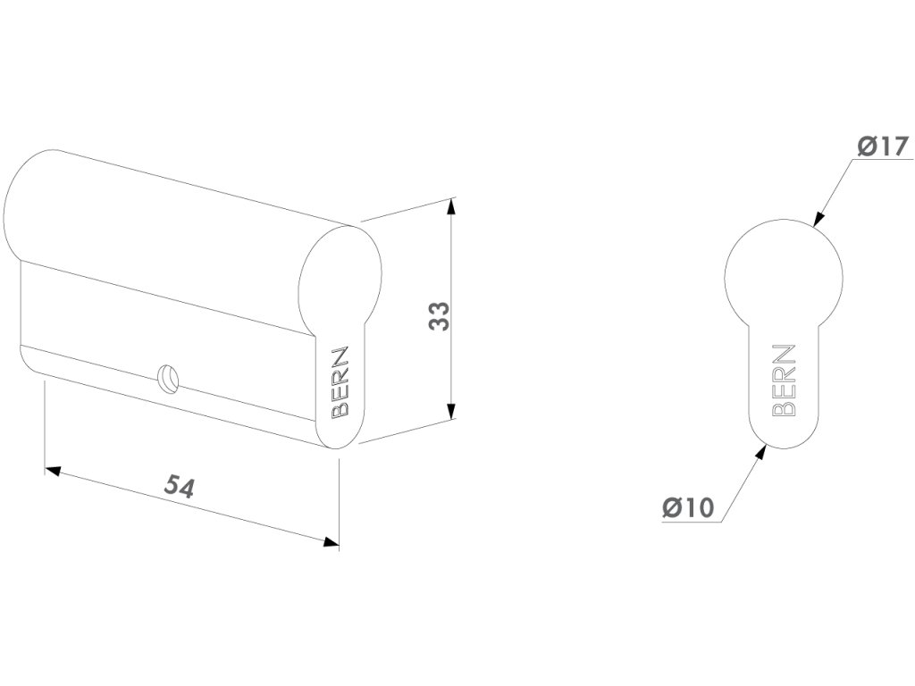 LOCINOX® slepá cylindrická vložka EURO 54mm, niklová, šroub M5x65mm
