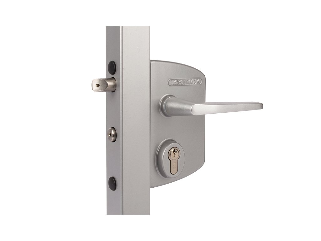 LOCINOX® Zámkový set LAKQ U2 pre profil Ø80 - Ø100 mm (kazeta, zámok, hliníkové kľučky, cylindrická vložka), strieborná