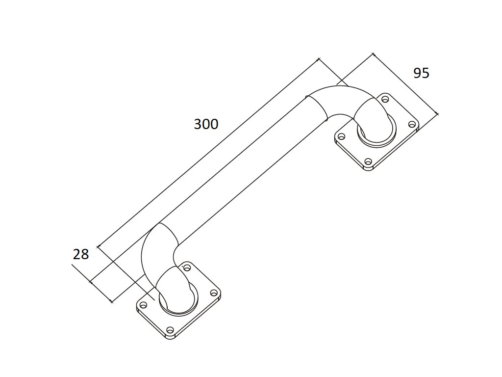 Madlo 348x88 mm, ø28 mm, odsazení 74 mm, pozinkované, černá prášková barva