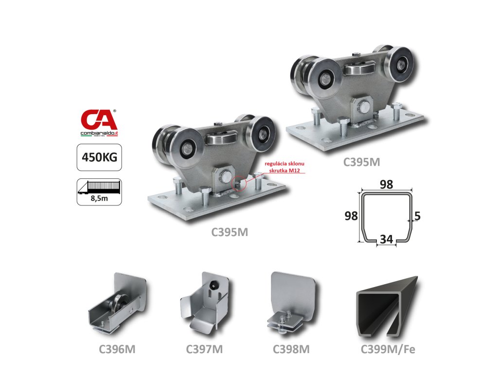 MEDIO-Klasik samonosný systém 98x98x5mm pro posuvné brány do 450kg/8,5m otvor, běžný provoz Obsah setu C399M/Fe 1x6m černý profil C395M KLASIK 2ks C396M 1ks C397M 1ks