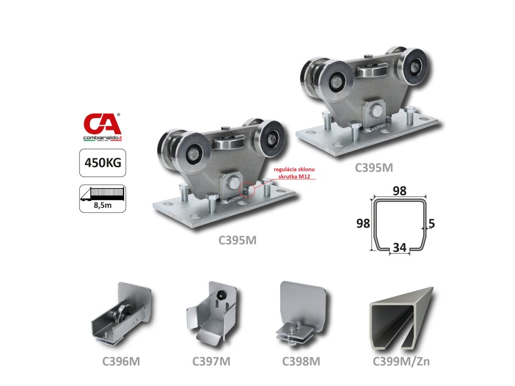 MEDIO-Klasik samonosný systém 98x98x5mm pro posuvné brány do 450 kg/8,5 m průjezd, běžný provoz Obsah balení C399M/Zn 1x 6m pozinkovaný profil C395M KLASIK 2 ks C396M 1ks C397M, C398M 1ks