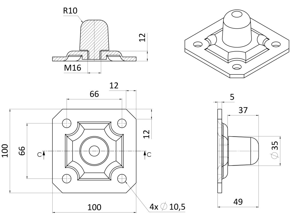 Nastavitelný doraz posuvných vrat, plotna 100x100mm, pozinkovaný