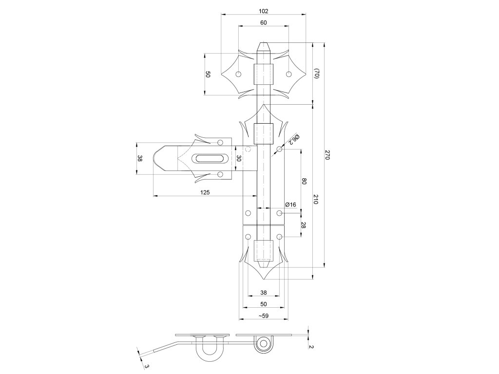 Petlice ø 16 mm, L=270 mm, černá, ozdobnáDoplňkové parametry