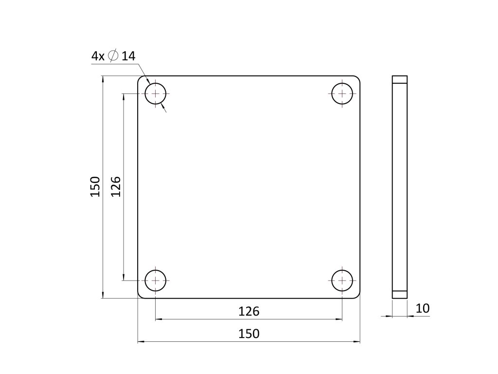 Platňa univerzálna 150x150x10mm, bez povrchovej úpravy