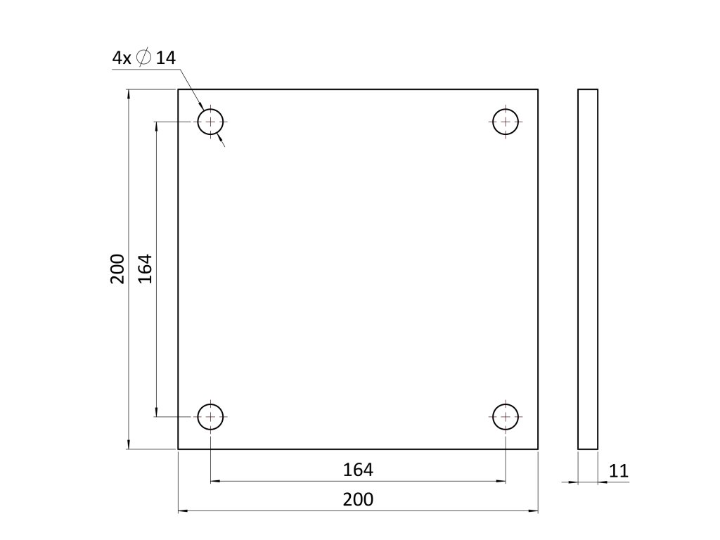 Platňa univerzálna 200x200x11mm, bez povrchovej úpravy