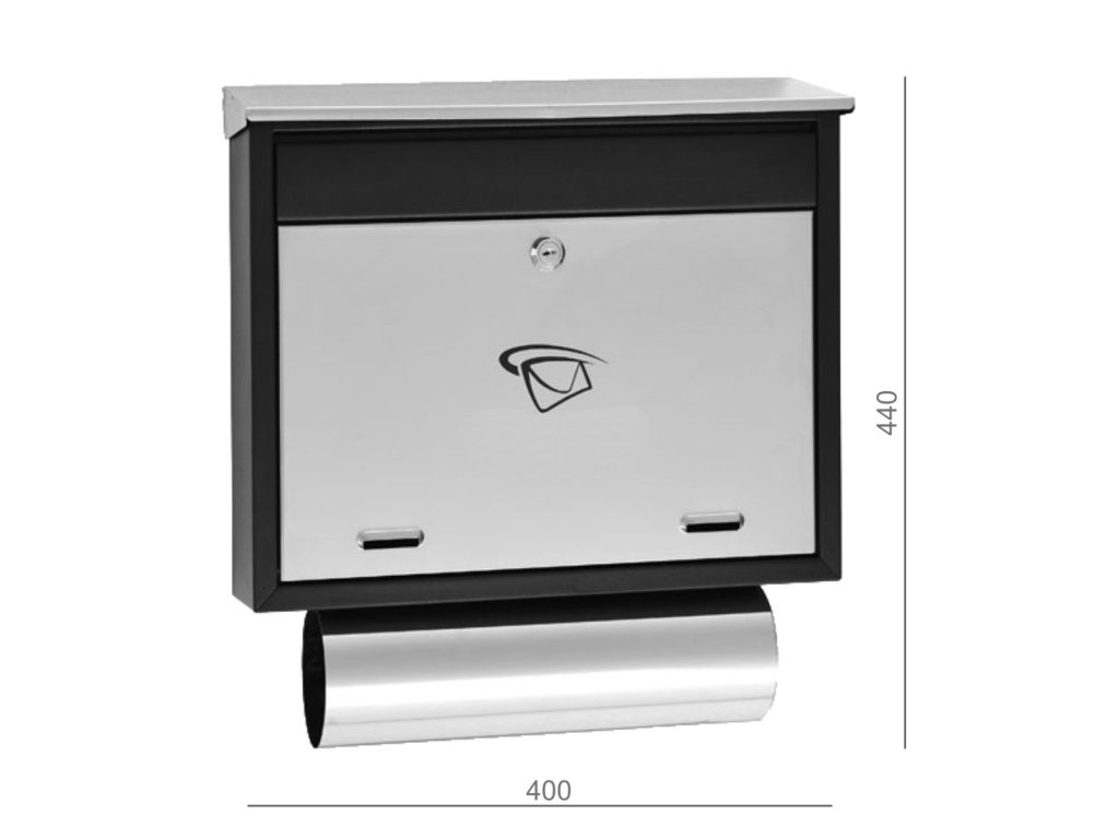 Poštovní schránka (400x440x100 mm) nerez / černá, max. formát listu: C4, leštěná nerez AISI430Doplňkové parametry