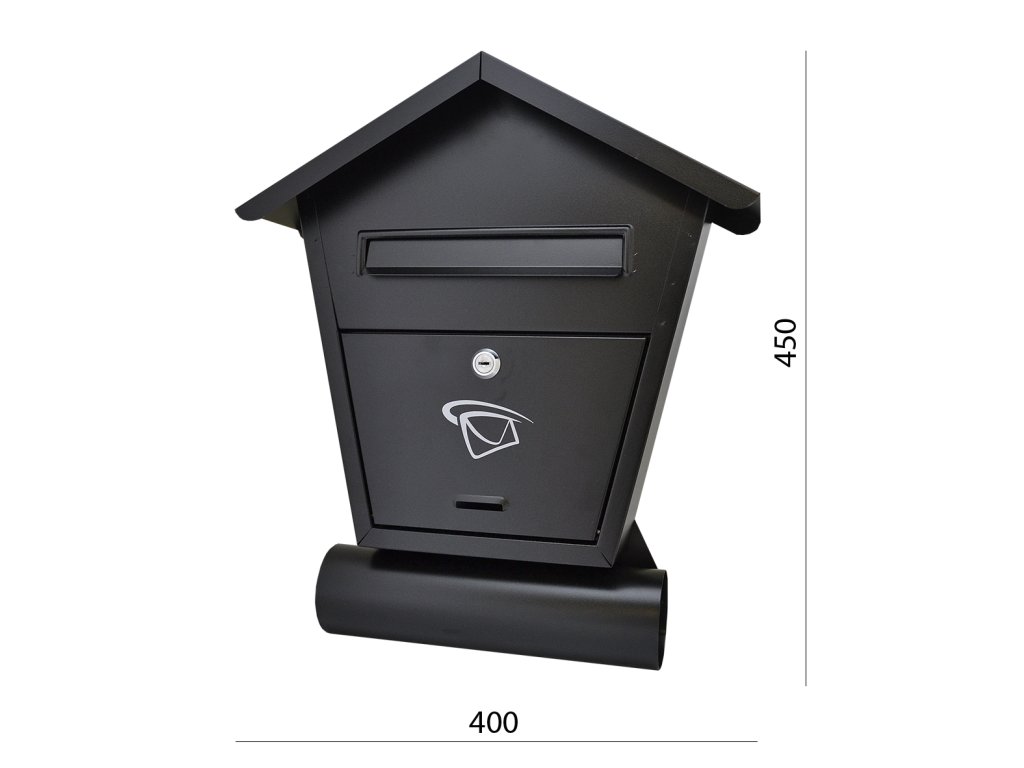 Poštovní schránka 400x450x70mm, černá matná, max. formát listu: B6, tunel na noviny ø75 mm Jak si namontujete poštovní schránku? Do zateplené fasády Použijte spirálové hmoždinky WKDS Hmoždinka se jednoduše zašroubuje do izolace, šroub použijeme s průměrem 4,5 mm. Pro tloušťku izolace 60 mm a více použijte WK-DS050. WK-DS085 lze použít pro tloušťku izolace 90 mm a více. Nosnost jedné takové hmoždinky je až 5 kg, takže pro poštovní schránku je to zcela dostačující. Další možností je provrtat izolaci až do zdiva, ale v tomto případě je důležité zvolit dostatečně dlouhou hmoždinku. Máme na výběr se šroubem nebo bez něj. Do dřeva Použijeme samořezný šroub do dřeva, kterých je na výběr spousta. Pokud nechceme použít samořezné šrouby a máme-li přístup z druhé strany dřeva, můžeme použít klasické metrické šrouby s podložkou a maticí. Máme na výběr potřebné délky. Do kovu / o kov Pokud to situace dovolí, můžeme k upevnění použít samovrtné šrouby TEX, k dispozici je máme také se zápustnou hlavou nebo s půlkulatou hlavou - jejich výhodou je, že je můžeme použít bez předvrtání. Další možností je upevnění pomocí šroubu a nýtovací matice - tím se vytvoří potřebný závit i v tenkém profilu a schránka se snadno přišroubuje.Doplňkové parametry