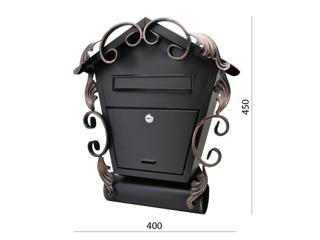 Poštovní schránka 400 x 450 x 70 mm, černá-měděná, , max. formát listu: B6, novinový vhoz: ø 75mm Jak si namontujete poštovní schránku? Do zateplené fasády Použijte spirálové hmoždinky WKDS Hmoždinka se jednoduše zašroubuje do izolace, šroub použijeme s průměrem 4,5 mm. Pro tloušťku izolace 60 mm a více použijte WK-DS050. WK-DS085 lze použít pro tloušťku izolace 90 mm a více. Nosnost jedné takové hmoždinky je až 5 kg, takže pro poštovní schránku je to zcela dostačující. Další možností je provrtat izolaci až do zdiva, ale v tomto případě je důležité zvolit dostatečně dlouhou hmoždinku. Máme na výběr se šroubem nebo bez něj. Do dřeva Použijeme samořezný šroub do dřeva, kterých je na výběr spousta. Pokud nechceme použít samořezné šrouby a máme-li přístup z druhé strany dřeva, můžeme použít klasické metrické šrouby s podložkou a maticí. Máme na výběr potřebné délky. Do kovu / o kov Pokud to situace dovolí, můžeme k upevnění použít samovrtné šrouby TEX, k dispozici je máme také se zápustnou hlavou nebo s půlkulatou hlavou - jejich výhodou je, že je můžeme použít bez předvrtání. Další možností je upevnění pomocí šroubu a nýtovací matice - tím se vytvoří potřebný závit i v tenkém profilu a schránka se snadno přišroubuje.Doplňkové parametry