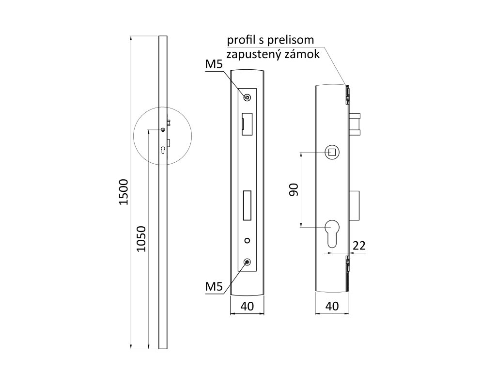 Profil 40 x 40 x 1,5 x 1500 mm se zapuštěným zámkem, rozteč 90 mm