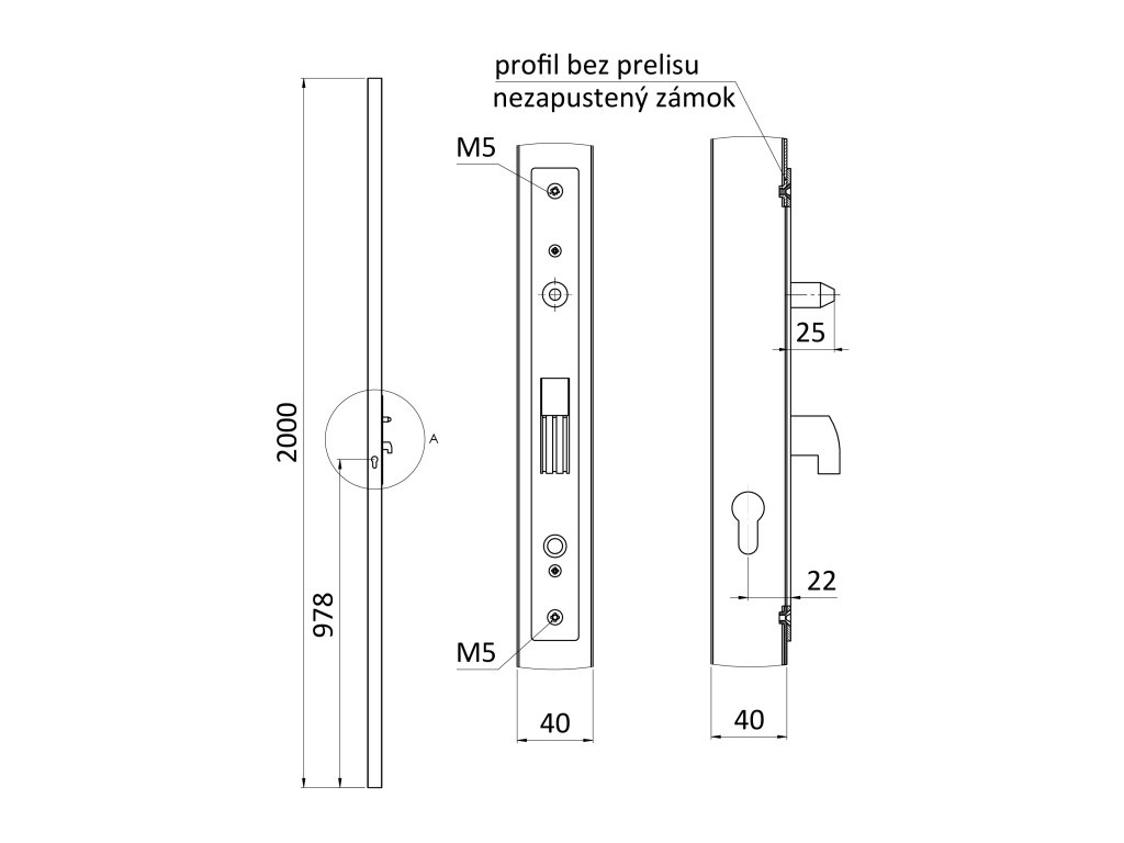 Profil 40 x 40x1,5 mm, H=2000 mm se zámkem bez zapuštění