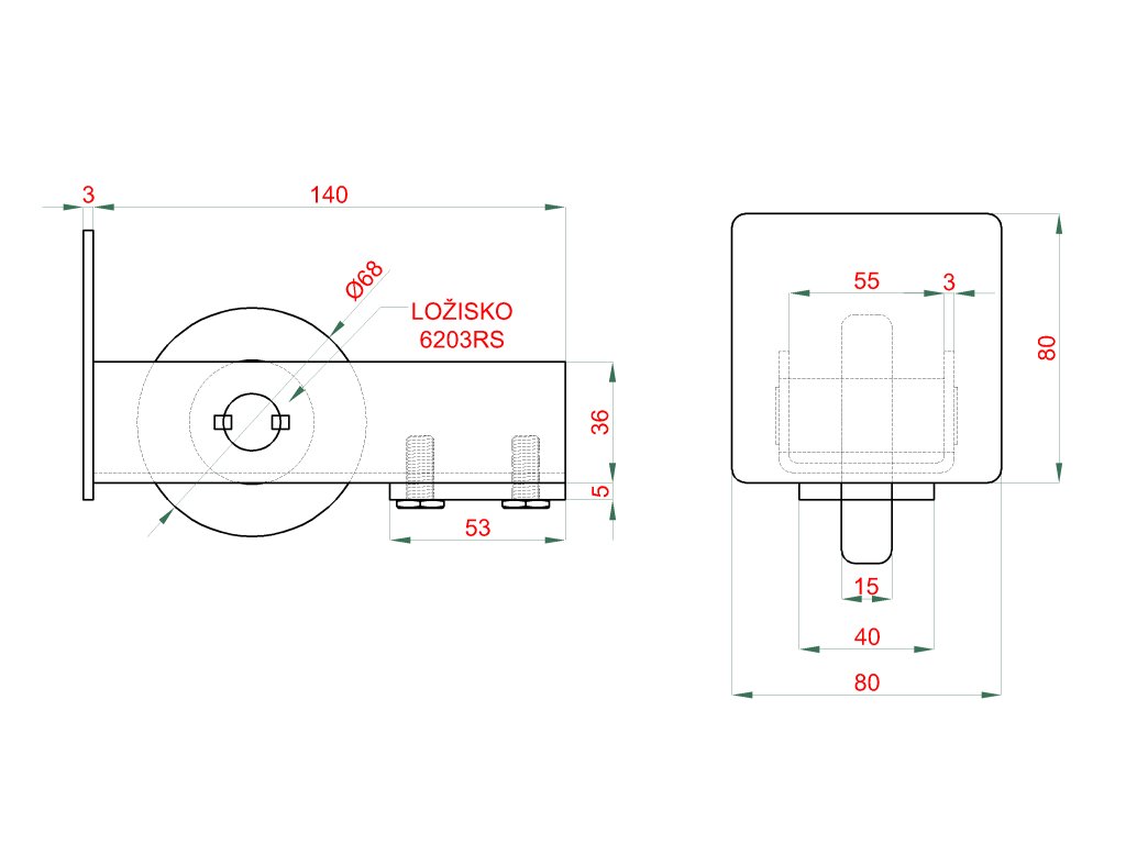 Samonos do 500 kg/6 m, profil 80 x 80 x 5 mm, Fe