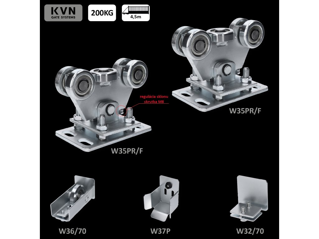 Set pro samonosný systém 70 x 70 x 4 mm, 2x regulovatelné vozíky, 1x doraz, 1x náběhové kolečkoDoplňkové parametry